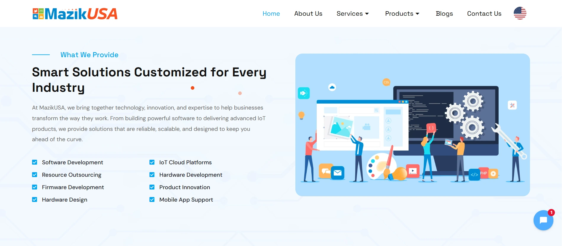 - Clear Service Presentation: Structured pages highlighting MazikUSA’s offerings, from IoT enabled systems to data analytics and embedded hardware.